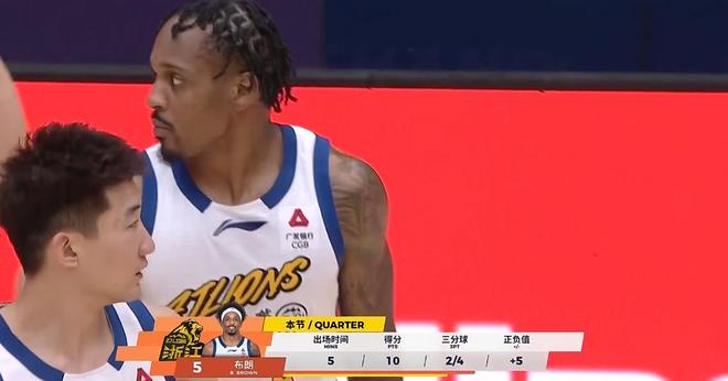 压力给到山东,完全防不住布朗只能上3人包夹,并且珀赛尔还浪费了一次绝佳反击机会,节中陶汉林打进止血中投,珀赛尔犯错再被造进攻犯规,3分18秒,布朗大神顶着山东2人防守再飚进三分,完完全全是一人在单挑山东全队。