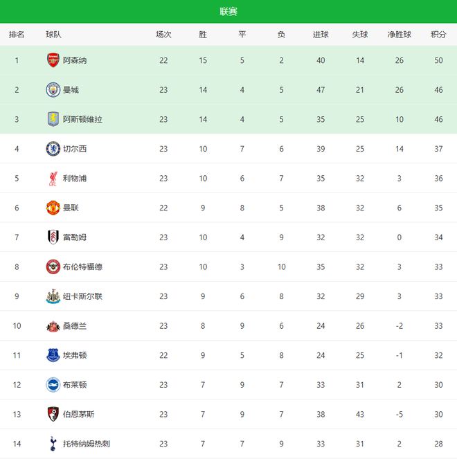 英超第23轮,多家B6球队联手出击,一边是总身价高达11.8亿欧元的切尔西在伦敦德比中强势反弹,3-1全取3分,送给水晶宫11场不胜;另一边,大黑马阿斯顿维拉稳扎稳打,在圣詹姆斯公园2-0完胜带走3分,继续紧咬曼城;另外一场则是诺丁汉森林客场2-0拿下布伦特福德,状态有所回暖,现如今利物浦已经落后维拉与曼城多大10分之巨,英超争四集团彻底乱套啦!