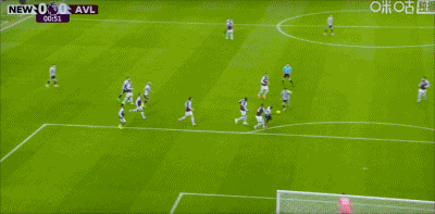 第19分钟,布恩迪亚远射破门,维拉客场1-0领先纽卡