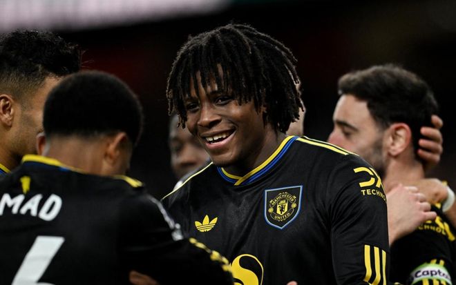 下半场易边再战。第50分钟,曼联再次进球!布鲁诺-费尔南德斯和多古撞墙配合。多古随即在禁区弧顶处起脚远射,皮球像炮弹一样钻入球门左上角!这脚世界波太漂亮了!曼联竟然反超比分!3分钟后,多古带球强行突入禁区左侧,起脚劲射,踢偏了。随后,萨卡内切射门被挡了出去。