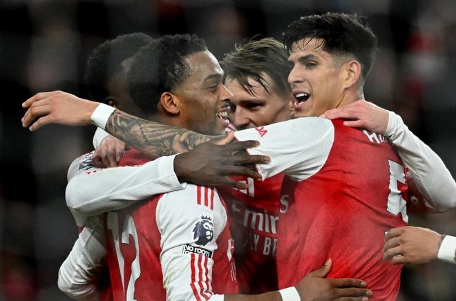 阿森纳排出了433阵型。萨卡、热苏斯和特罗萨德的进攻三叉戟联袂出击。厄德高、苏比门迪和赖斯组成3中场。廷贝尔、萨利巴、加布里埃尔和因卡皮耶4后卫首发出战。戴维-拉亚担任首发门将。马丁内利、哲凯赖什和马杜埃凯坐在替补席待命。