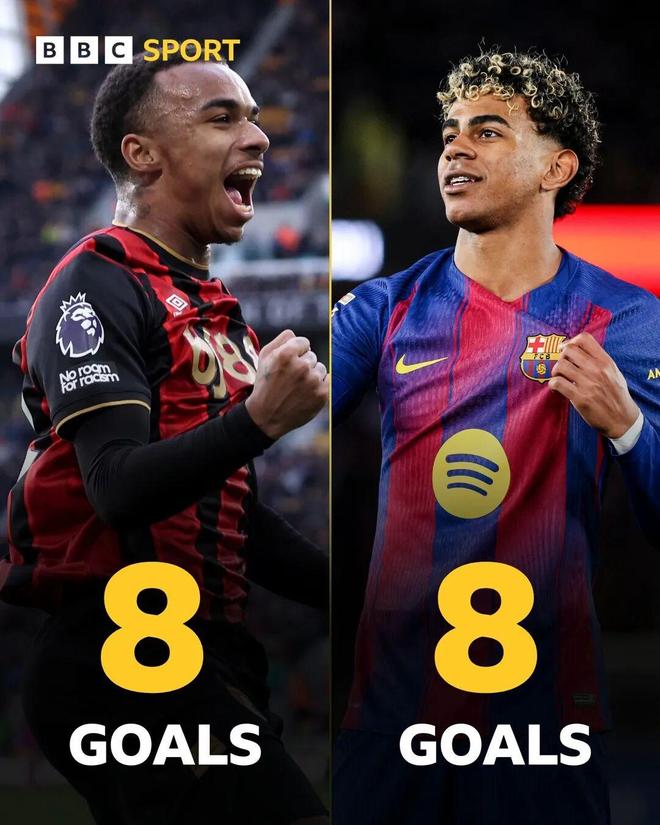 冬窗失去赛门尼奥对伯恩茅斯来说本是一记重创,但像克鲁皮周六对阵狼队时的这粒进球,多少缓解了这位加纳国脚近期转投曼城带来的阵痛。伊劳拉的球队在面对这支英超垫底球队时,上半场还剩12分钟时仍未有一次射正,直到克鲁皮在狼队禁区边缘接阿德利的挑传后胸部停球,一脚雷霆万钧的弧线球远射直接攻破了狼队球门。这是克鲁皮本赛季第8粒联赛进球,一度让他与巴萨球星亚马尔持平,成为五大联赛进球最多的U20球员。但后者在周六晚间对阵埃尔切的比赛中打进了个人本赛季第九球。